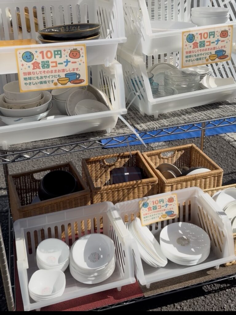🌞あおぞら市🌞爆安特売日🔥🔥食器10円 レトロ雑貨 ジャンク市 550円以上の服・鞄半額!